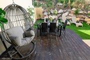 יש מיטות שיזוף, בחצר המתחם מטבח חיצוני המשותף לאורחי המקום, דשא ירוק, יש מנגל בחצר, יש פרגולה, חנייה באזור, ריהוט גינה, עצים, שולחן פינג פונג, בחצר קשור ערסל, פינת ישיבה הצופה לנוף למתארחים. דשא סינטטי